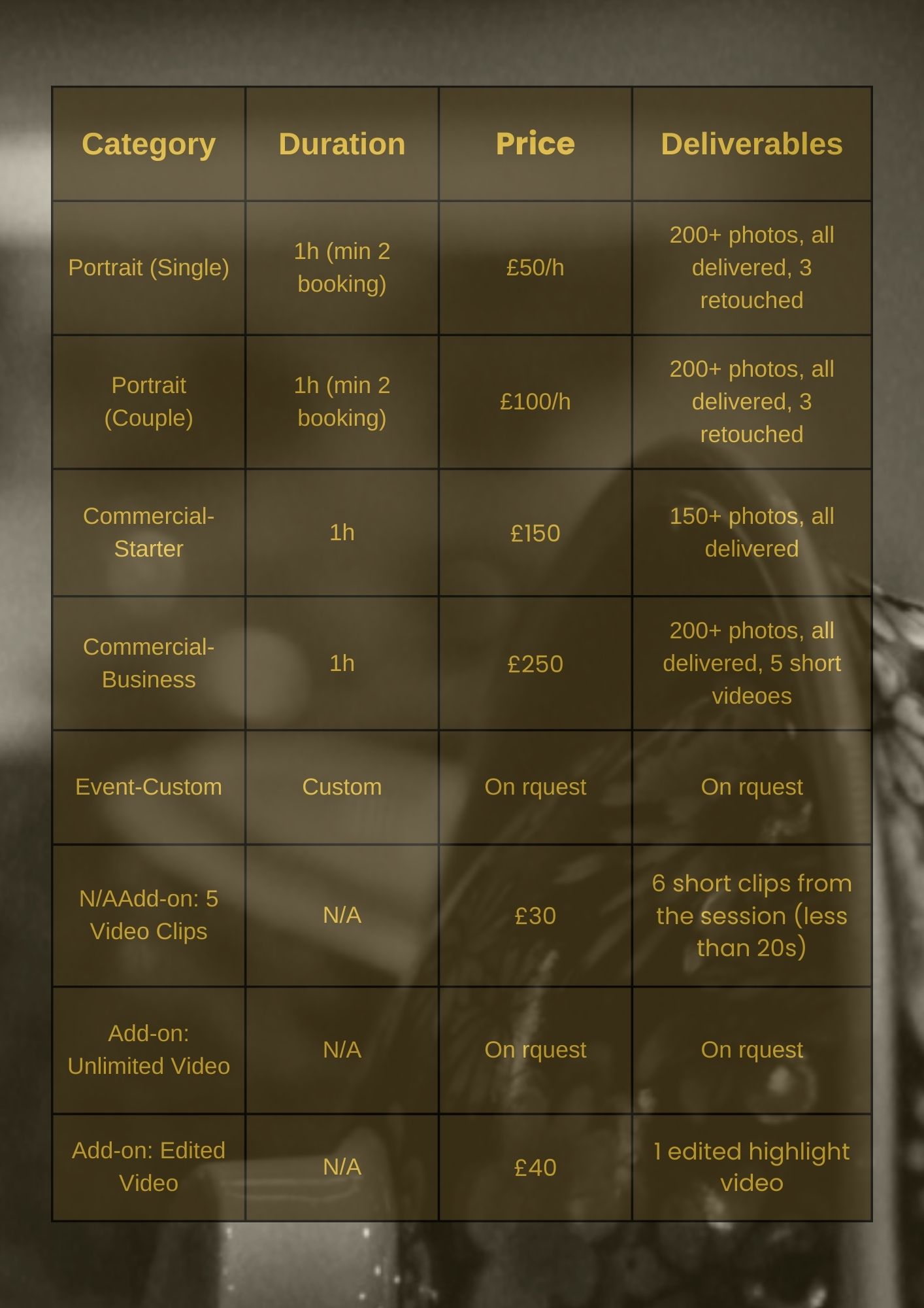 Personal photoshoots